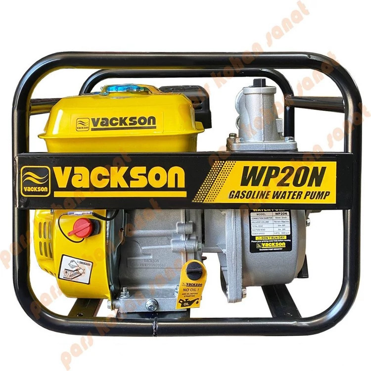 موتور پمپ واکسون 2 اینچ مدل VACKSON WP20N موتور آب بنزینی واکسون 2 اینچ مدل VACKSON WP20N مجهز به موتور 212CC که توانای تولید 7 اسب بخار را دارد, آبدهی 42 متر مکعب(حداکثر 700 لیتر در دقیقه ) و انتقال تا ارتفاع 30 متر از ویژگی های این موتور آب بنزینی محسوب میشود محصولی که اکنون مشاهده می کنید پمپ و موتور آن هر دو ساخت چین می باشند. موتور پمپ واکسون 2 اینچ مدل VACKSON WP20N برای عملکرد از سوخت بنزین استفاده می کند و قطر دهانه ورودی و خروجی آن 2 اینچ می باشد همچنین این موتور پمپ می تواند آب را از ارتفاع 8 متر عمودی مکش کرده و تا ارتفاع مفید 30 متر عمودی یا 450 متر افقی ارسال نماید. ویژگی های موتور پمپ واکسون 2 اینچ مدل VACKSON WP20N حداکثر ارتفاع :تا 30 متر حداکثر ابدهی :تا 700 لیتر در دقیقه قدرت موتور : 7 اسب بخار دور موتور : 3600 دور در دقیقه وزن : 25 کیلوگرم قوی و سبک وزن مناسب برای آبگیری، آبیاری،کشت باغی، پمپاژ آب ازچاه، تغذیه یا تخلیه آب ازحوضچه یا فاضلاب یا مزارع ماهی،شستشو انبار و ……… مشخصات مارک و مدل موتور پمپ واکسون 2 اینچ مدل VACKSON WP20N قدرت موتور 7 اسب نوع استارت هندل حجم باک 4.6 لیتر حجم روغن 0.5 لیتر سایز خروجی و مکش 2 اینچ ارتفاع انتقال اب 30 متر عمق مکش 8 متر ابدهی 700 لیتر در دقیقه ابعاد 38*38*48سانتیمتر وزن 25 کیلوگرم کاربرد انتقال مایعات اقلام همراه دفترچه راهنما - آچار شمع - صافی - سر شیلنگی 2 عدد - بست لوله