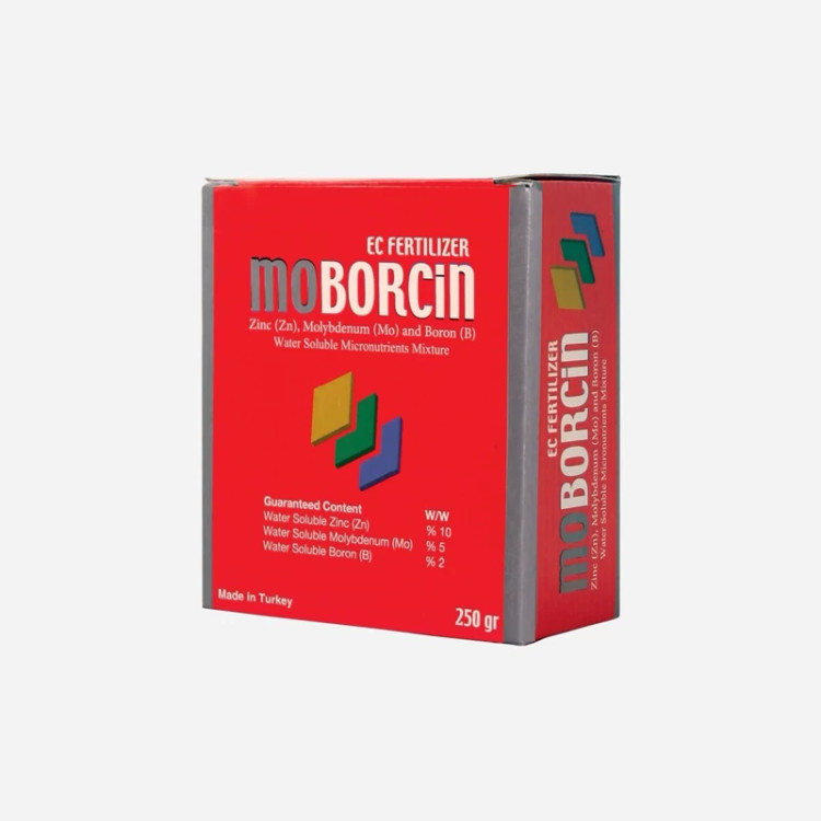 مصرف موبورسین باعث گرده افشانی بیشتر و تحریک رشد جوانه و افزایش گل و میوه در بیشتر گیاهان می شود. کمک به خوشه بندی و تلقیح گیاهان و همچنین جلوگیری از ریزش گل و میوه از مزایای مصرف این نوع کود می باشد. افزایش عملکرد، بهبود کیفیت محصول و جلوگیری از سال آوری درختان با مصرف نمودن این محصول، کاملاً امکان پذیر می باشد. سرعت بالای جذب از طریق برگ بهبود گل و افزایش رنگ میوه بهبود گرده افشانی و افزایش درصد تبدیل گل به میوه